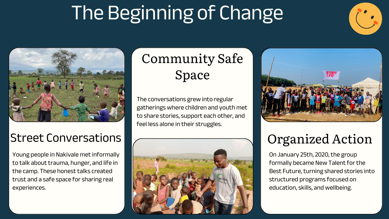 Founded in January 2020, New Talent For the Best Future is a refugee-led organization supporting vulnerable children, and youth in the Nakivale settlement to grow their talents and rebuild hope.